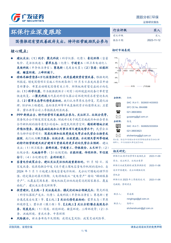 【广发证券】【20231112】环保行业深度跟踪:国债推进有望改善政府支出,特许经营鼓励民企参与-15页