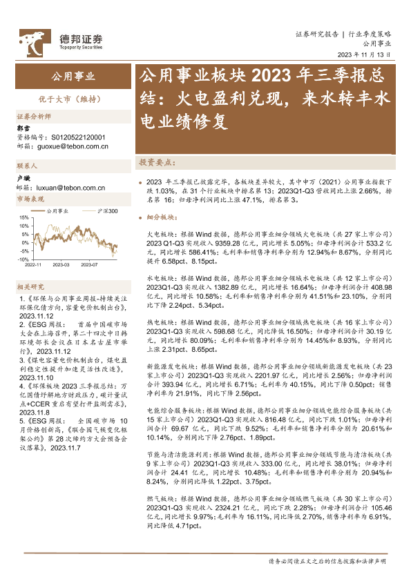 【德邦证券】【20231113】公用事业板块2023年三季报总结-28页