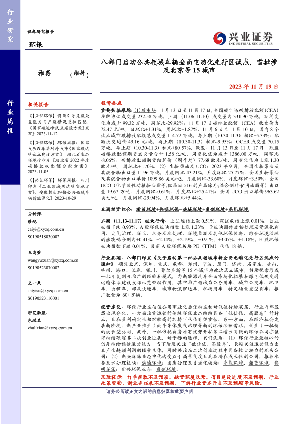 【兴业证券】【20231119】八部门启动公共领域车辆全面电动化先行区试点,首批涉及北京等15城市-11页