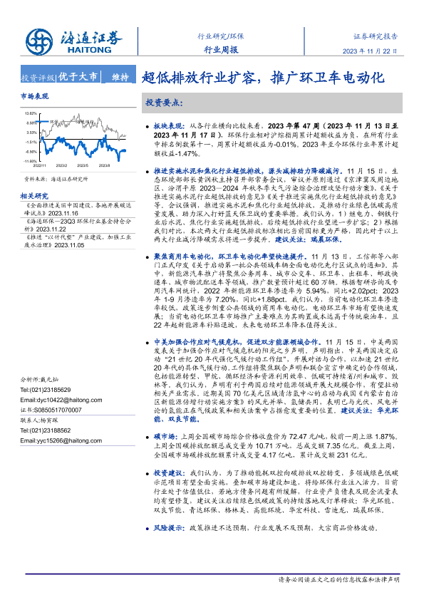【海通证券】【20231122】环保行业周报:超低排放行业扩容,推广环卫车电动化-15页