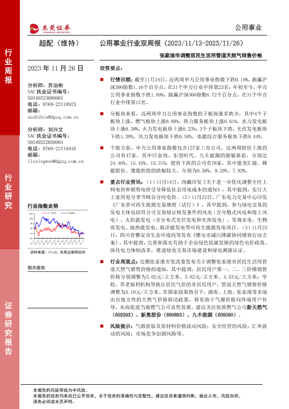 【东莞证券】【20231126】公用事业行业双周报:张家港市调整居民生活用管道天然气销售价格-11页