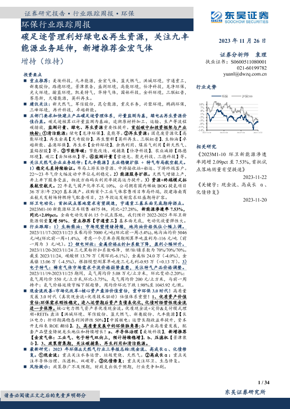 【东吴证券】【20231126】环保行业跟踪周报:碳足迹管理利好绿电&再生资源,关注九丰能源业务延伸,新增推荐金宏气体-34页