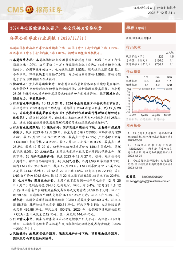 污水处理 煤炭价格 环保公用事业 电力市场 能源会议