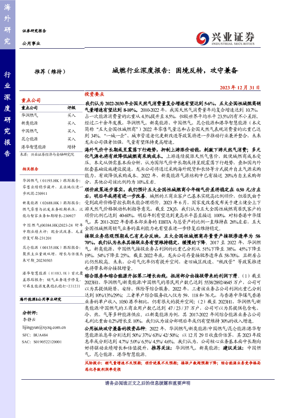 【兴业证券】【20231231】城燃行业深度报告:困境反转,攻守兼备-56页
