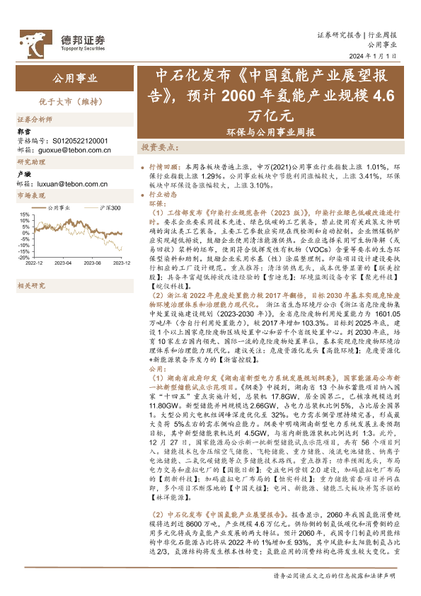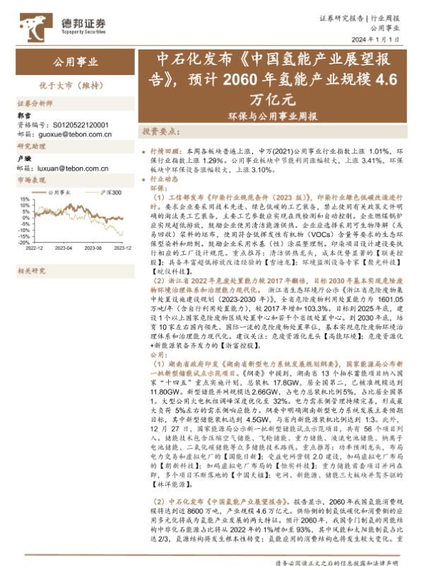 【德邦证券】【20240101】中石化发布《中国氢能产业展望报告》,预计2060年氢能产业规模4.6万亿元-20页