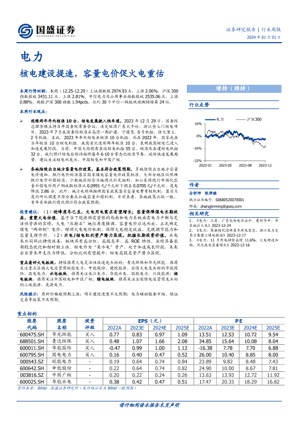 【国盛证券】【20240101】电力行业周报:核电建设提速,容量电价促火电重估-15页