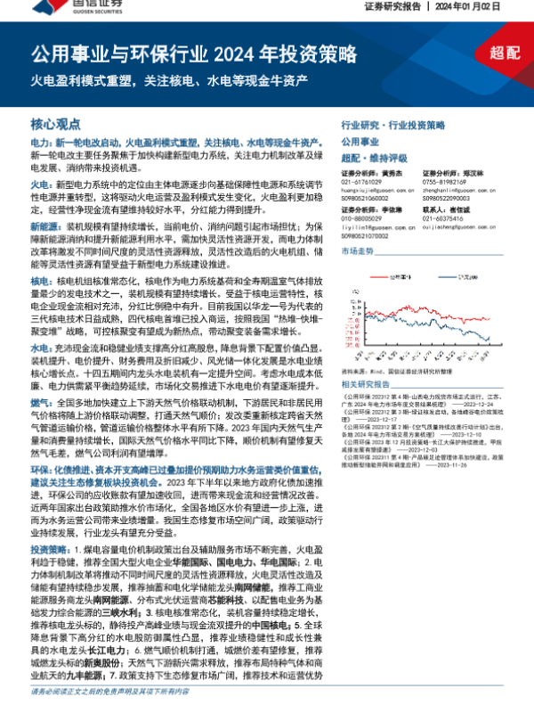 【国信证券】【20240102】公用事业与环保行业2024年投资策略-69页