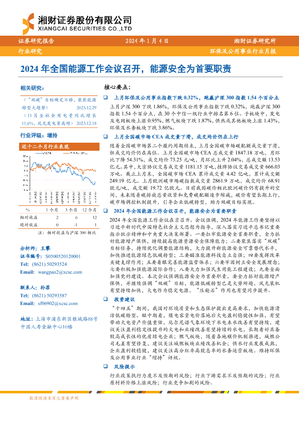 【湘财证券】【20240104】2024年全国能源工作会议召开,能源安全为首要职责-12页