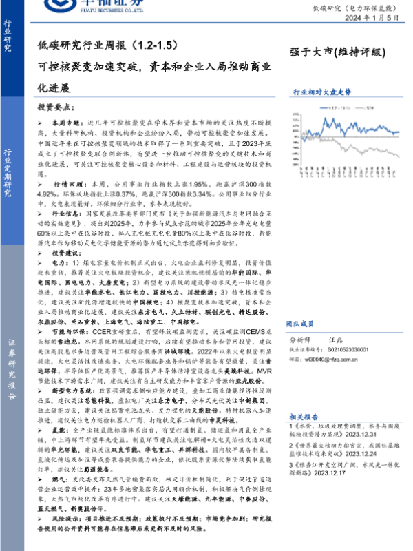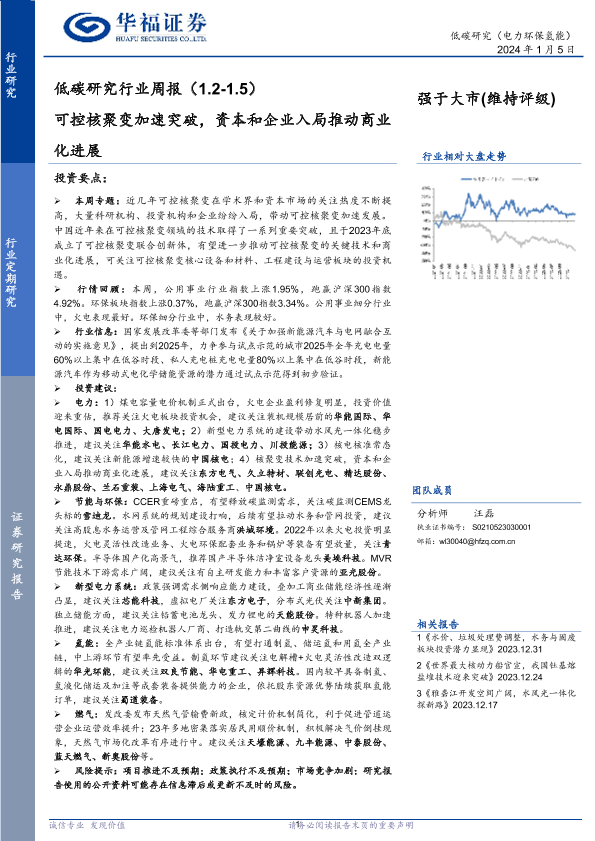 【华福证券】【20240105】低碳研究行业周报:可控核聚变加速突破,资本和企业入局推动商业化进展-17页