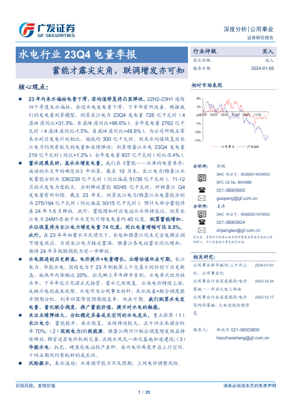 【广发证券】【20240105】水电行业23Q4电量季报:蓄能才露尖尖角,联调增发亦可知-23页