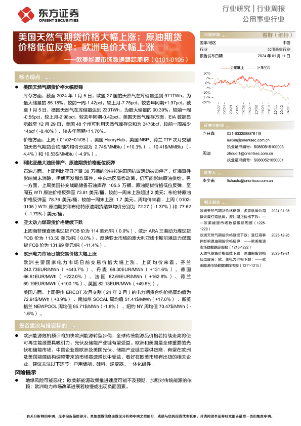 【东方证券】【20240111】欧美能源市场数据跟踪周报:美国天然气期货价格大幅上涨;原油期货价格低位反弹;欧洲电价大幅上涨-13页