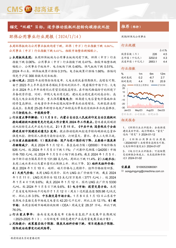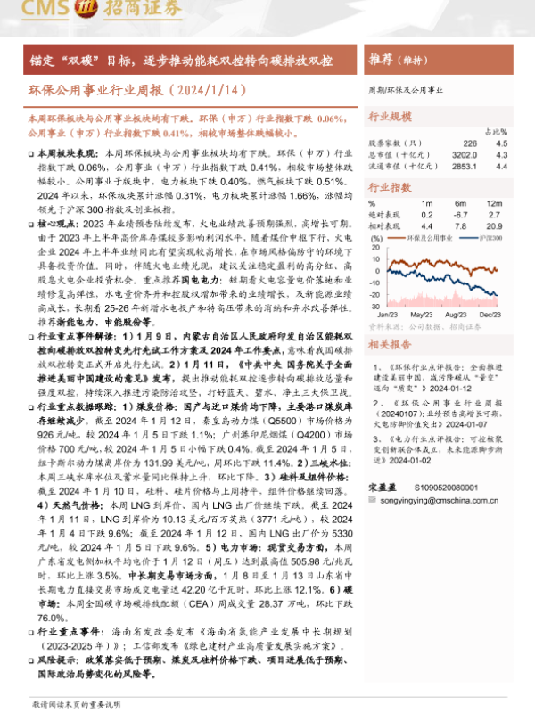 【海通证券】【20240114】环保公用事业行业周报:锚定“双碳”目标,逐步推动能耗双控转向碳排放双控-21页