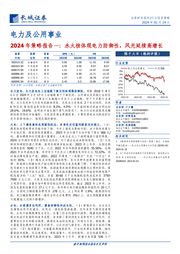 【长城证券】【20240124】2024年策略报告一:水火核体现电力防御性,风光延续高增长-43页