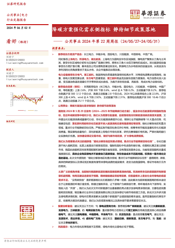 【华源证券】【20240602】公用事业2024年第22周周报:降碳方案强化需求侧指标 静待细节政策落地-10页