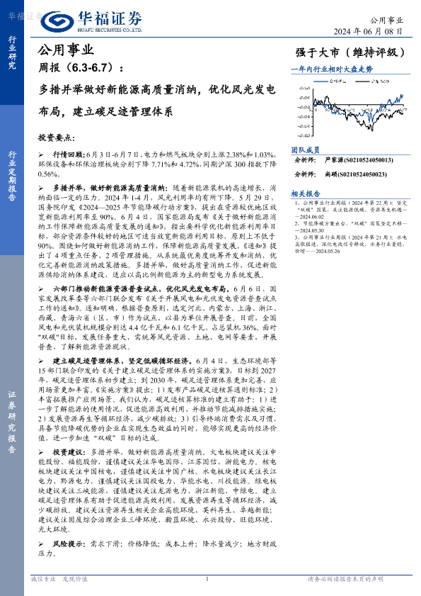 【华福证券】【20240608】公用事业周报:多措并举做好新能源高质量消纳,优化风光发电布局,建立碳足迹管理体系-23页