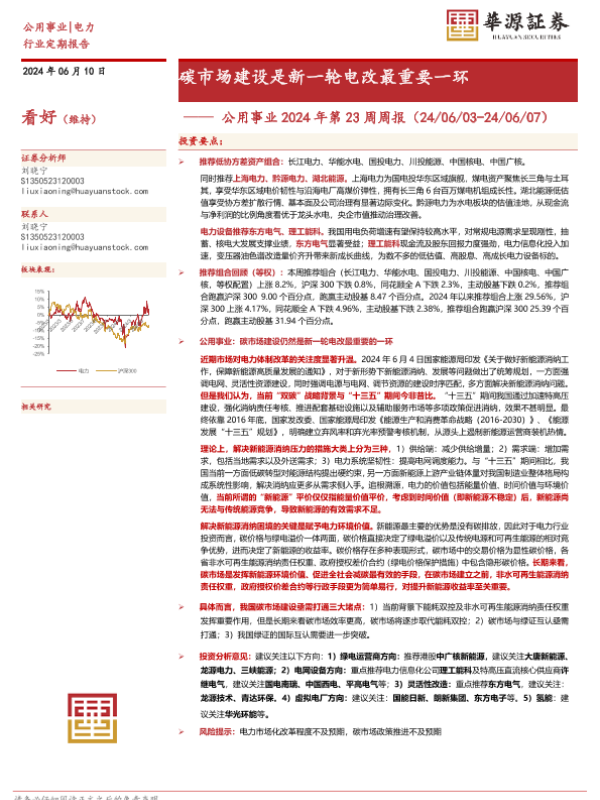 【华源证券】【20240610】公用事业2024年第23周周报:碳市场建设是新一轮电改最重要一环-11页