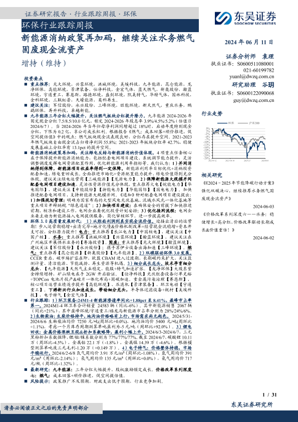 【东吴证券】【20240611】环保行业跟踪周报:新能源消纳政策再加码,继续关注水务燃气固废现金流资产-31页