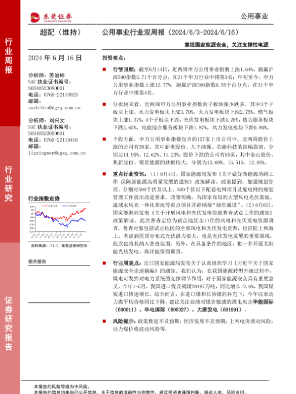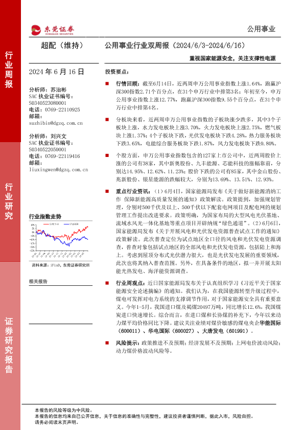 公用事业 支撑性电源 政策解读 能源安全 行业指数
