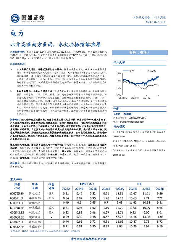 【国盛证券】【20240616】电力行业周报:北方高温南方多雨,水火共振持续推荐-15页
