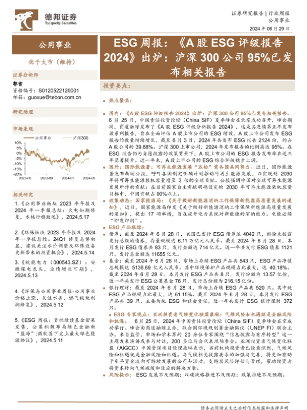 【德邦证券】【20240629】A股ESG评级报告2024出炉:沪深300公司95%已发布相关报告-15页