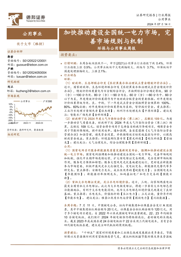 公用事业 市场规则 机制建设 环保政策 电力市场