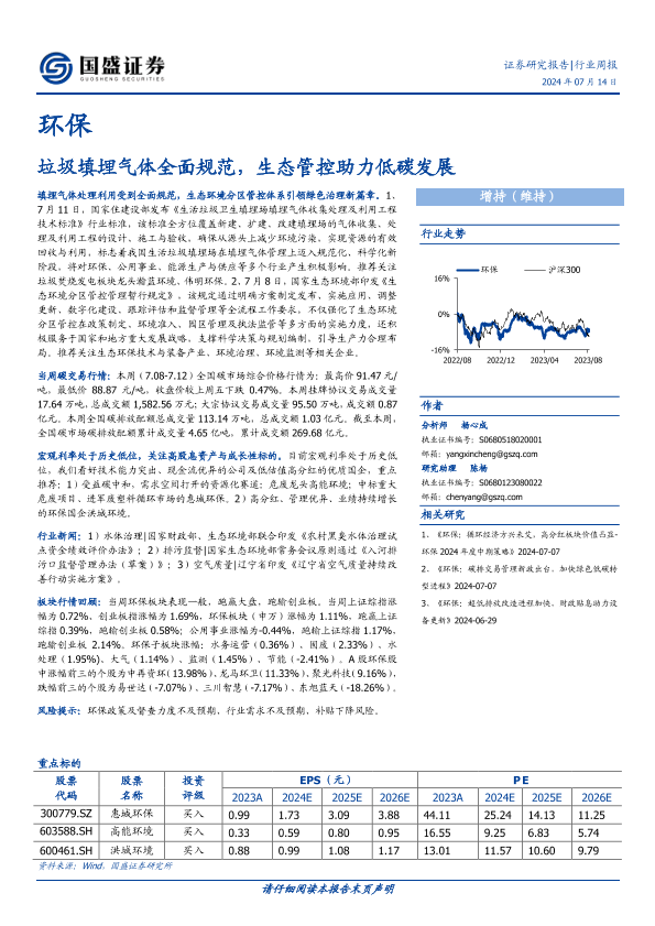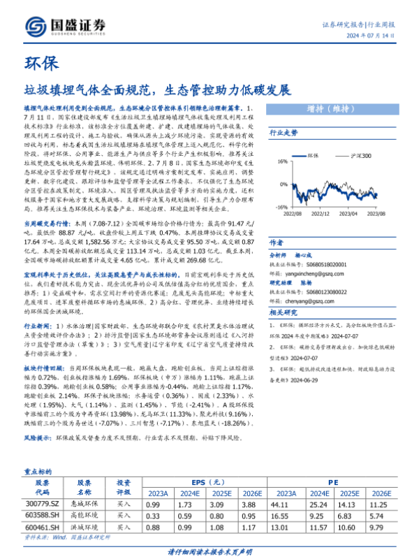 【国盛证券】【20240714】环保行业周报:垃圾填埋气体全面规范,生态管控助力低碳发展-11页