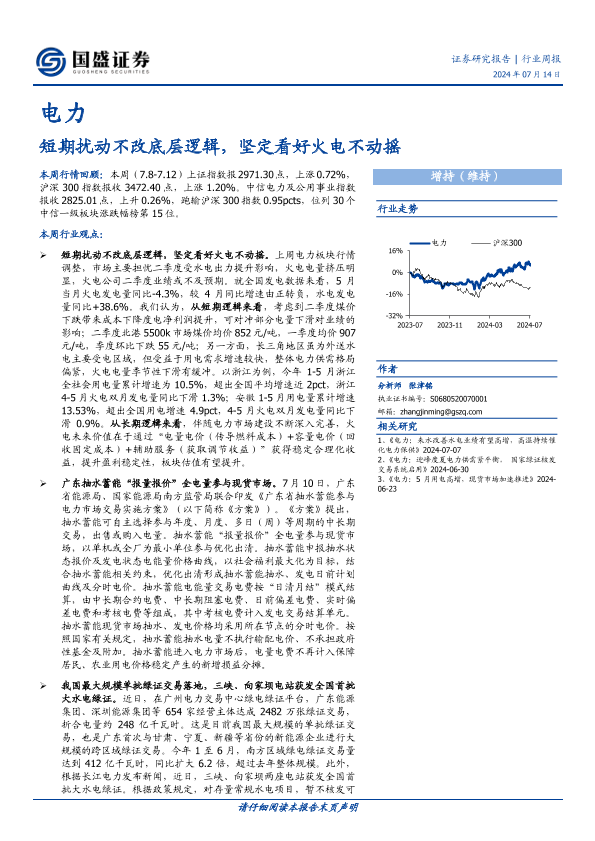 【国盛证券】【20240714】电力行业周报:短期扰动不改底层逻辑,坚定看好火电不动摇-17页