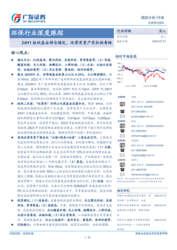 固废处理 基金持仓 水务 环保行业 运营类资产