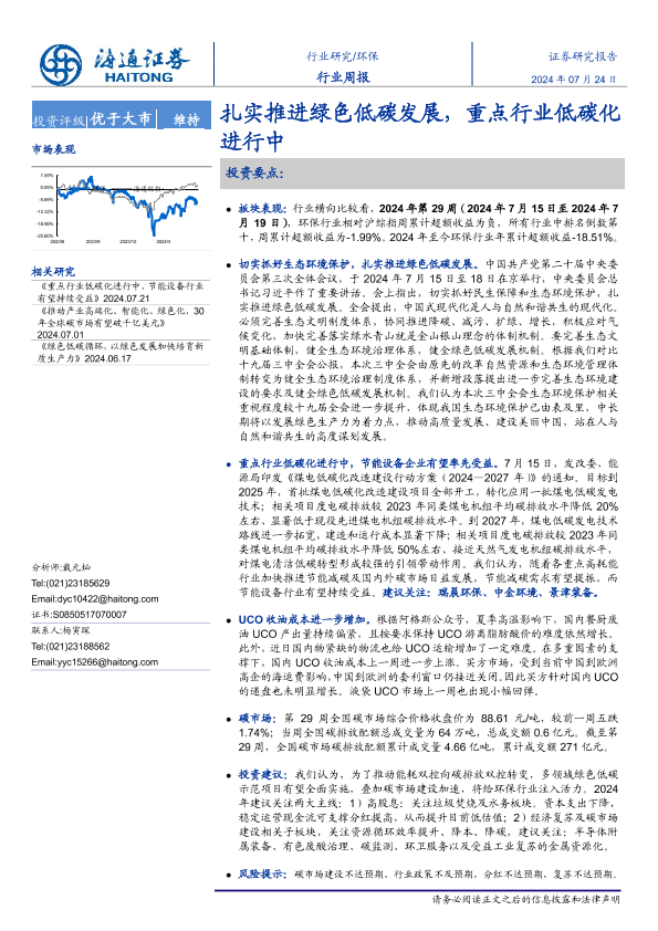 【海通证券】【20240724】环保行业周报:扎实推进绿色低碳发展,重点行业低碳化进行中-11页