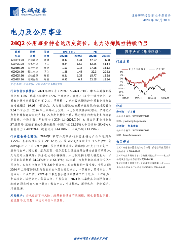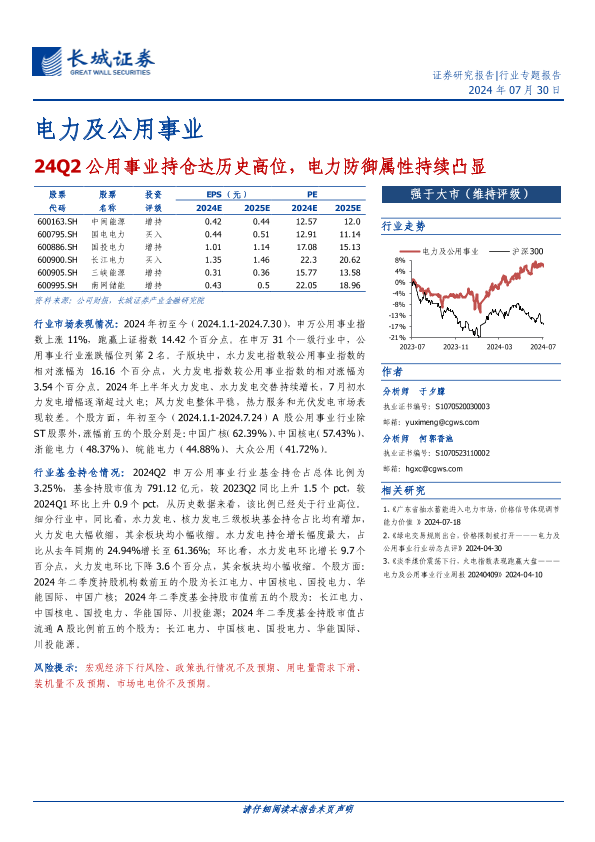【长城证券】【20240730】24Q2公用事业持仓达历史高位,电力防御属性持续凸显-11页
