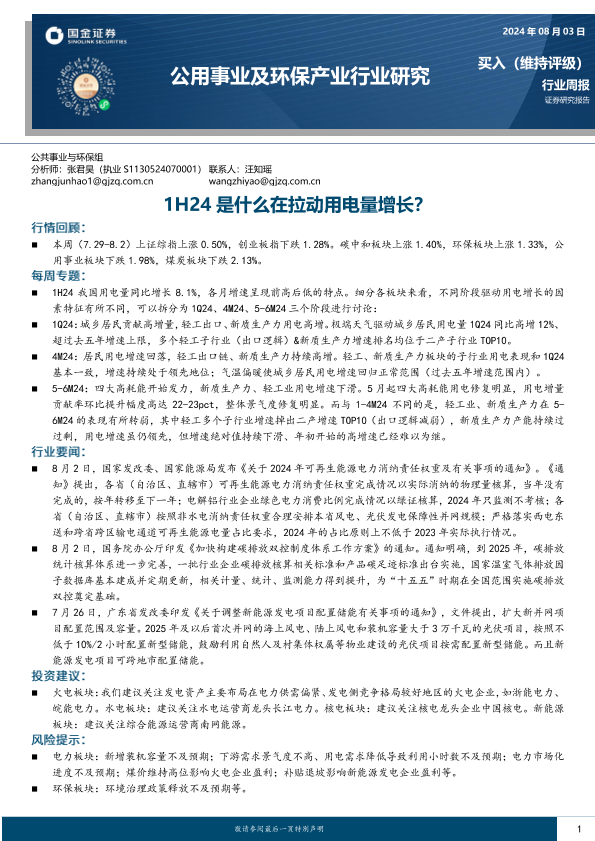 【国金证券】【20240803】1H24是什么在拉动用电量增长?-16页