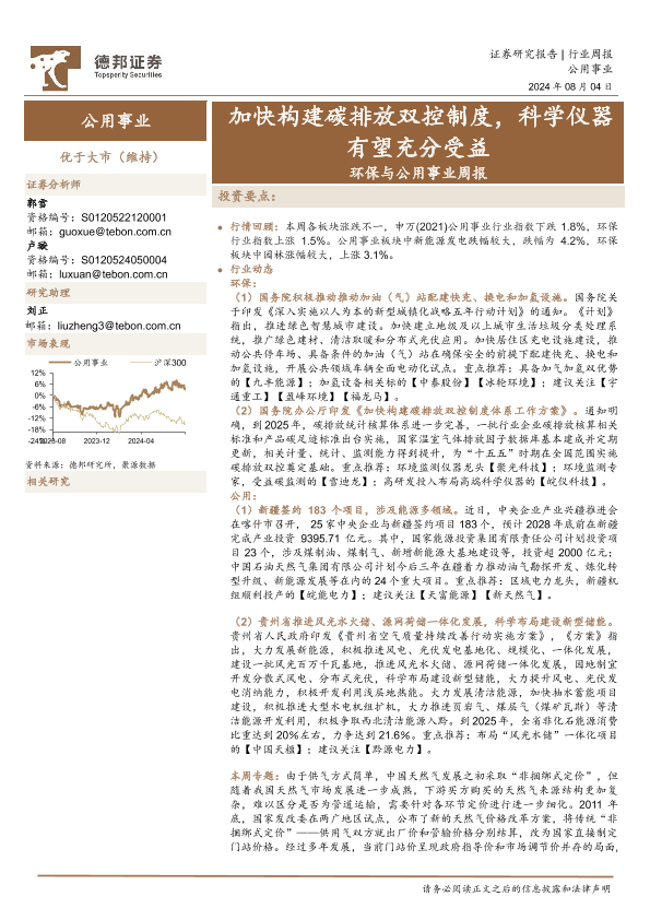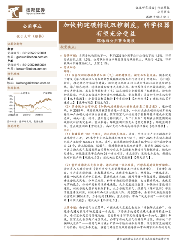 公用事业 政策推动 环保 碳排放 科学仪器