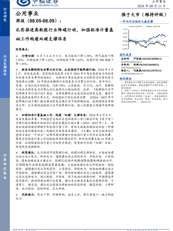 【华福证券】【20240811】扎实推进高耗能行业降碳行动,加强标准计量基础工作构建双碳支撑体系-20页