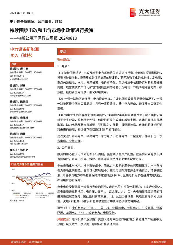 【光大证券】【20240818】电新公用环保行业周报:持续围绕电改和电价市场化政策进行投资-11页