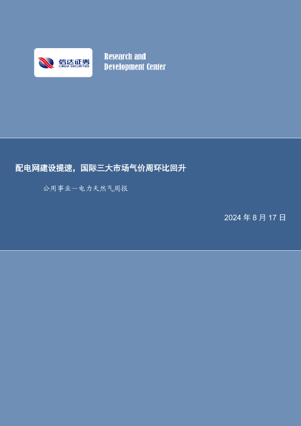 【信达证券】【20240817】配电网建设提速,国际三大市场气价周环比回升-21页