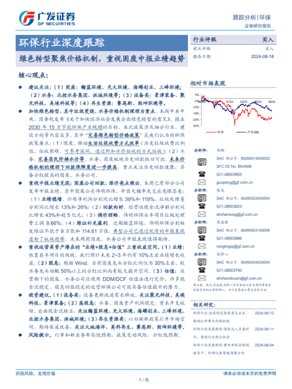 【广发证券】【20240818】环保行业深度跟踪:绿色转型聚焦价格机制,重视固废中报业绩趋势-15页