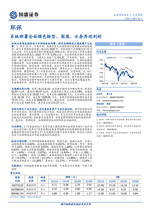【国盛证券】【20240818】环保行业周报:系统部署全面绿色转型,固废、水务再迎利好-14页