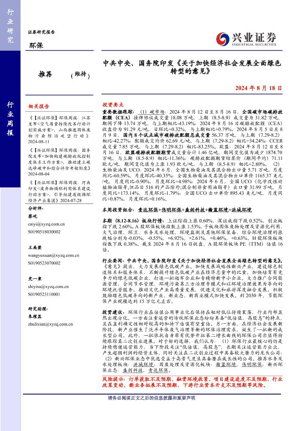 【兴业证券】【20240818】中共中央、国务院印发《关于加快经济社会发展全面绿色转型的意见》-10页