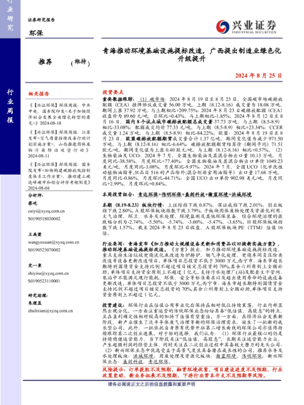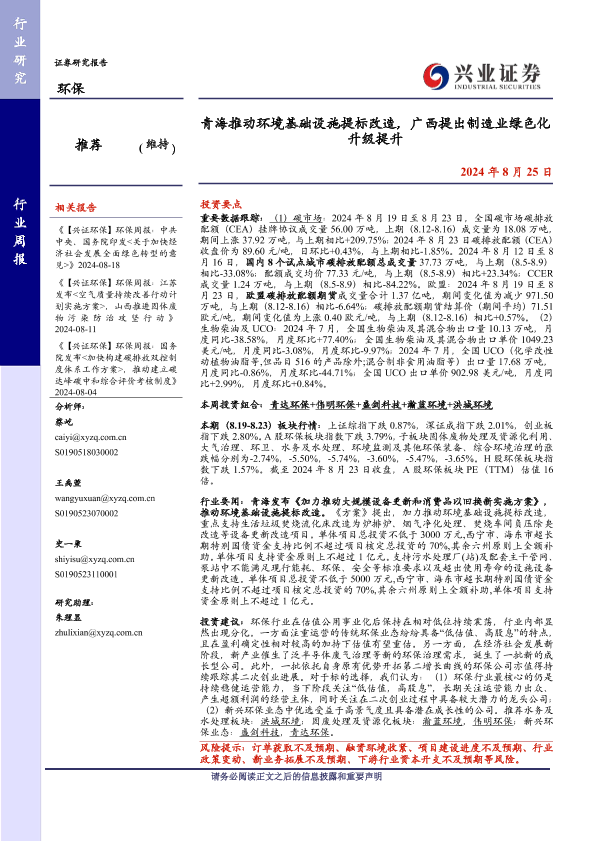 【兴业证券】【20240825】青海推动环境基础设施提标改造,广西提出制造业绿色化升级提升-11页