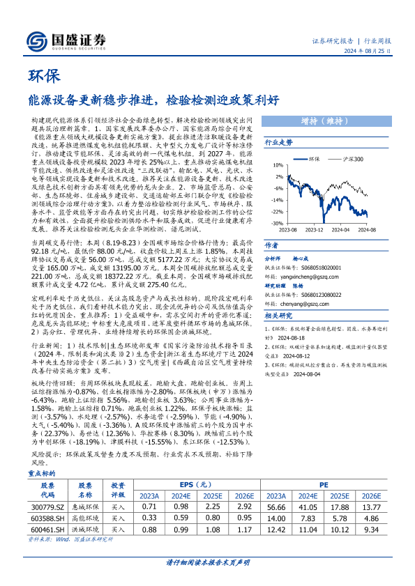 【国盛证券】【20240825】环保行业周报:能源设备更新稳步推进,检验检测迎政策利好-14页