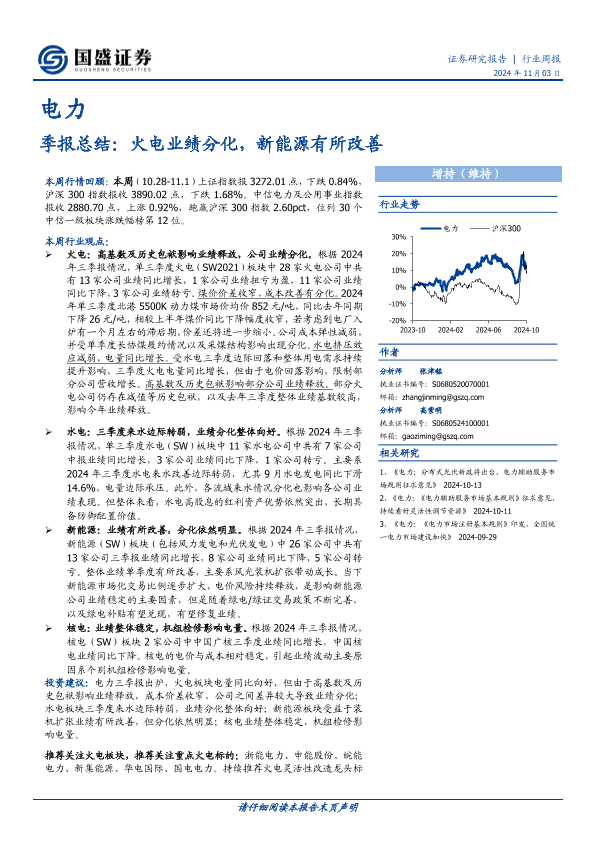 【国盛证券】【20241103】电力季报总结:火电业绩分化,新能源有所改善-20页