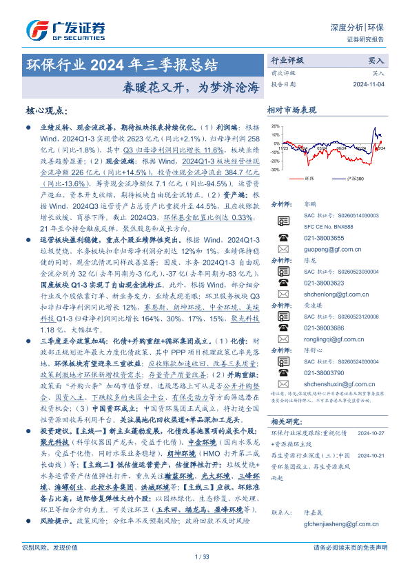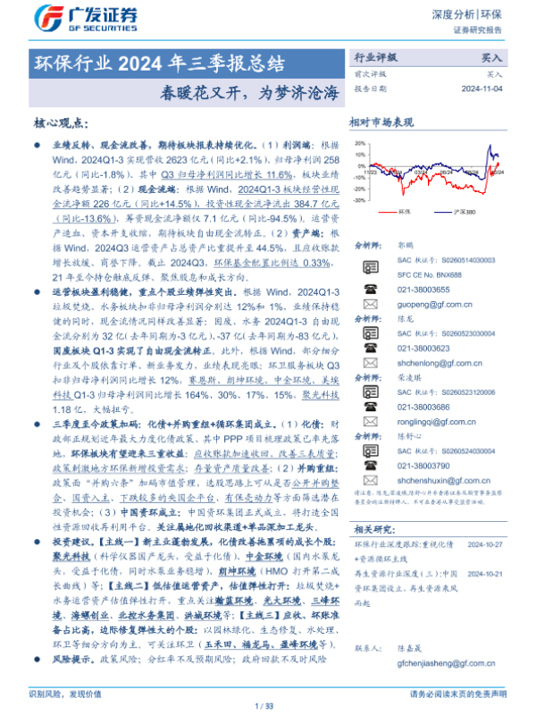 【广发证券】【20241104】环保行业2024年三季报总结:春暖花又开,为梦济沧海-33页