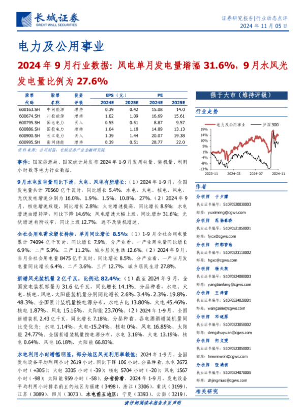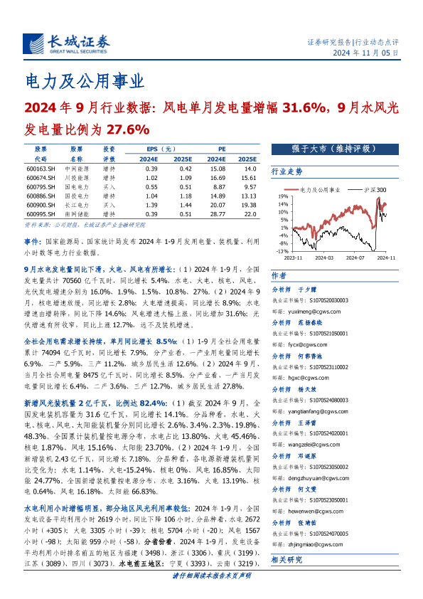 【长城证券】【20241105】2024年9月行业数据:风电单月发电量增幅31.6%,9月水风光发电量比例为27.6%-12页