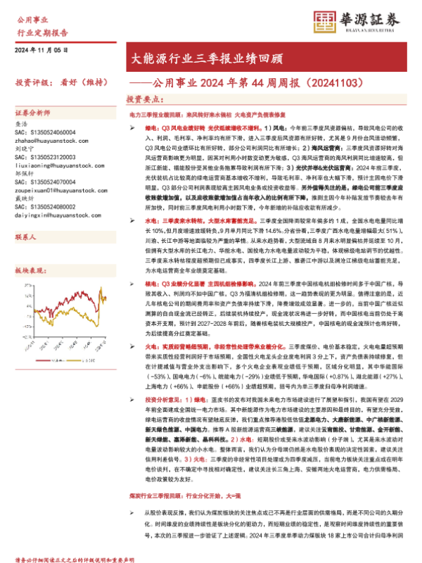 【华源证券】【20241105】大能源行业三季报业绩回顾-43页