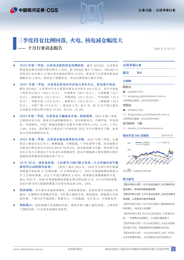 【银河证券】【20241104】公用事业行业月报:十月行业动态报告-20页