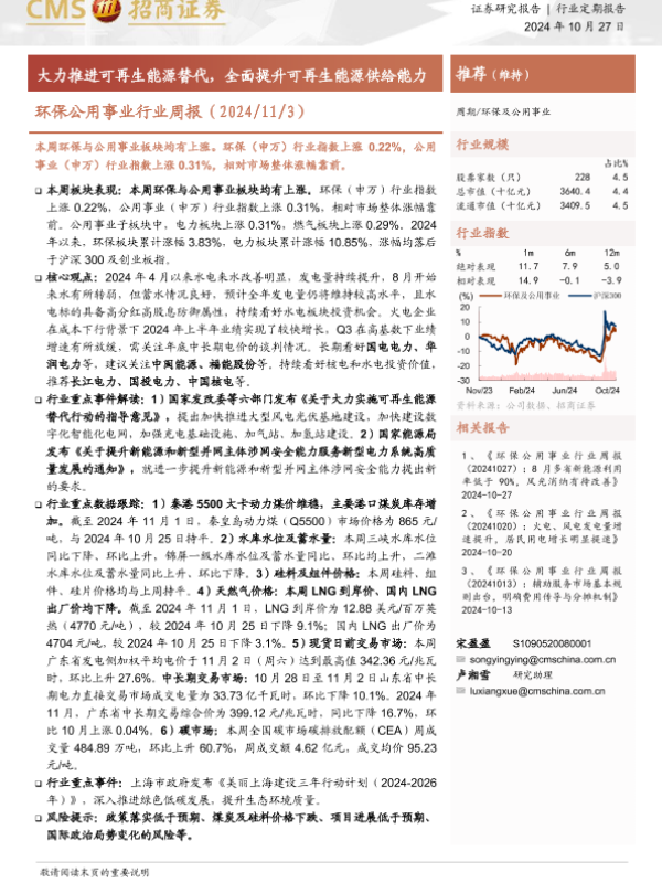 【海通证券】【20241103】环保公用事业行业周报:大力推进可再生能源替代,全面提升可再生能源供给能力-32页