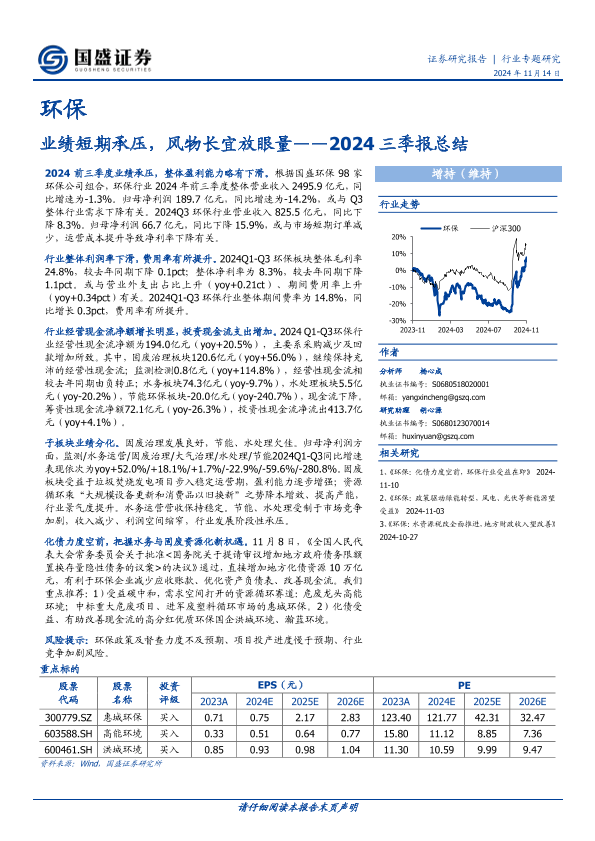 三季报 业绩分析 化债政策 子板块分化 环保行业