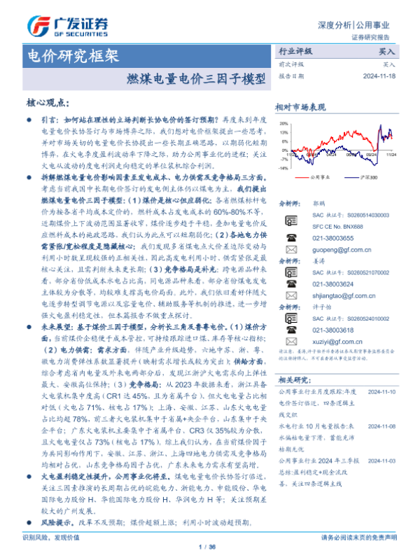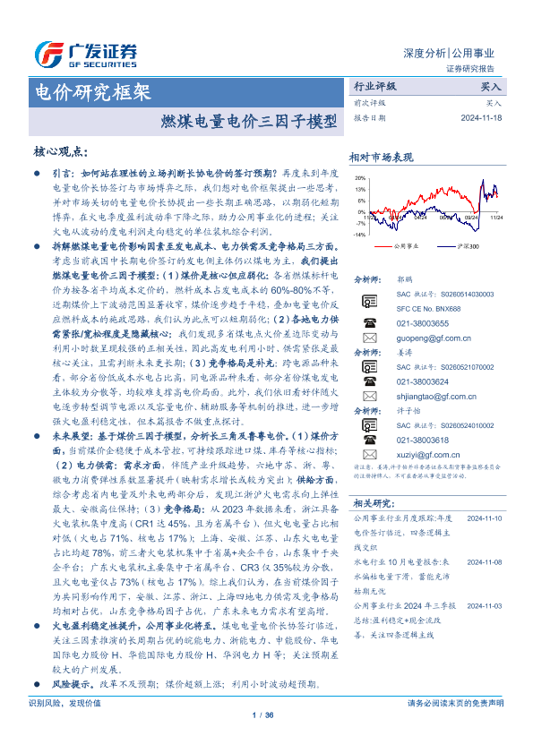 【广发证券】【20241118】电价研究框架深度分析:燃煤电量电价三因子模型-36页