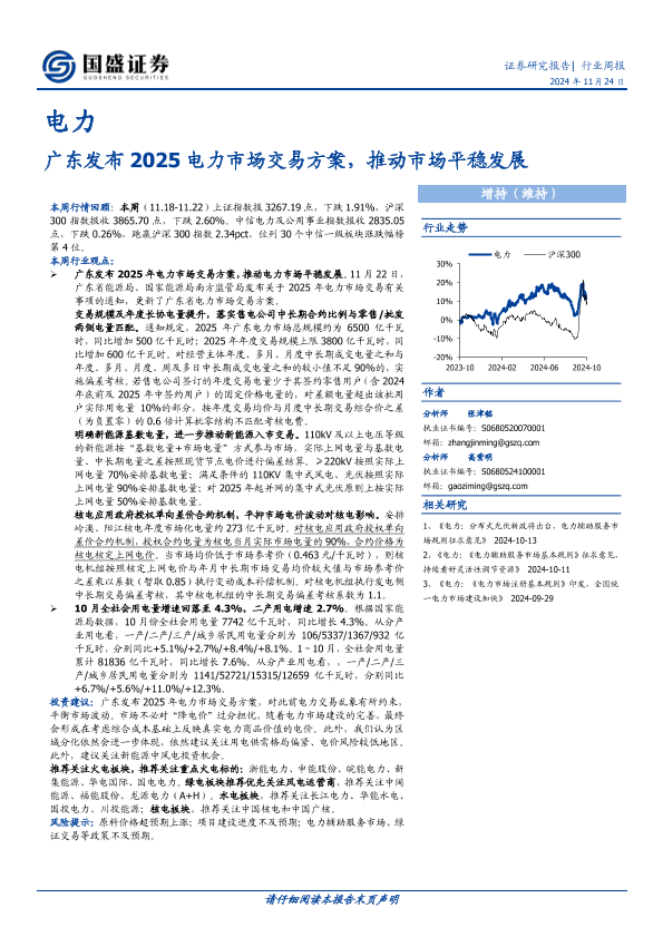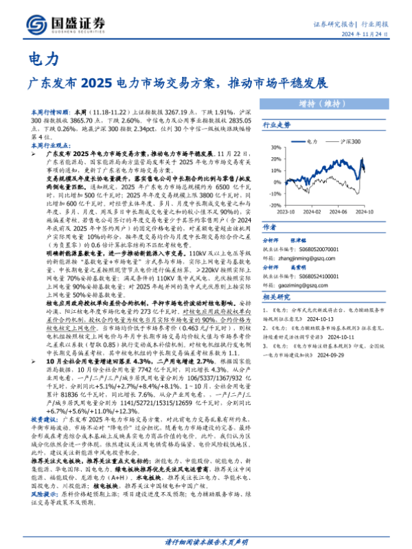 【国盛证券】【20241124】广东发布2025电力市场交易方案,推动市场平稳发展-17页