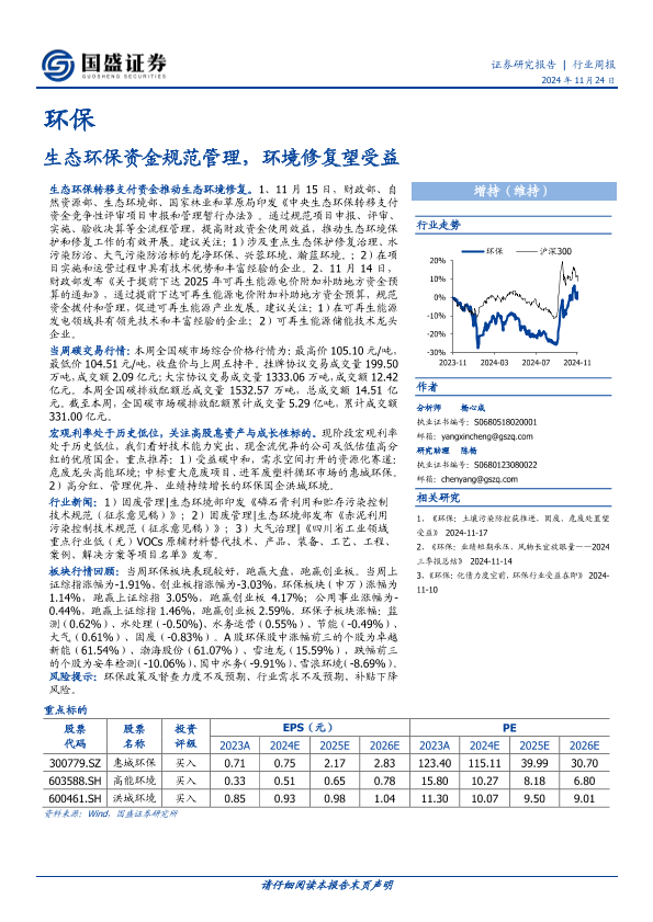 【国盛证券】【20241124】环保行业周报:生态环保资金规范管理,环境修复望受益-12页
